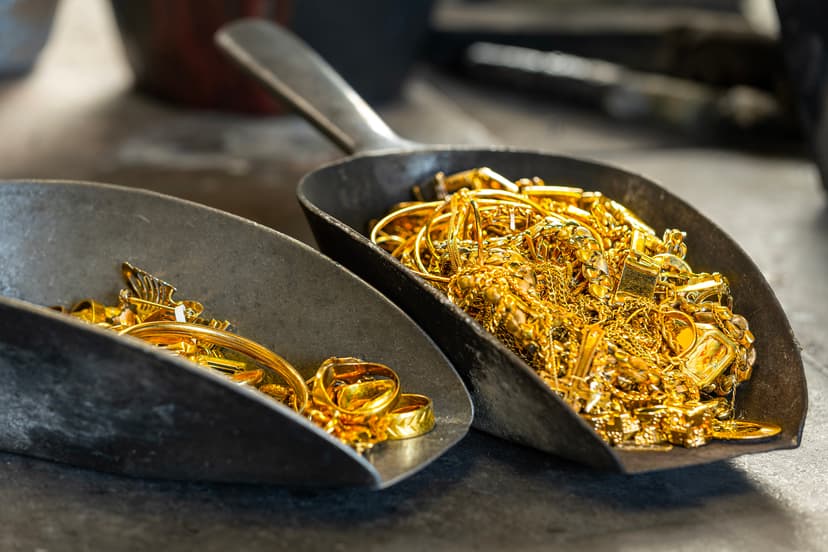Sloopgoud en sloopzilver, oude sieraden, beleggingsmunten en -baren, vijlsel, lavuur, boorsel.
